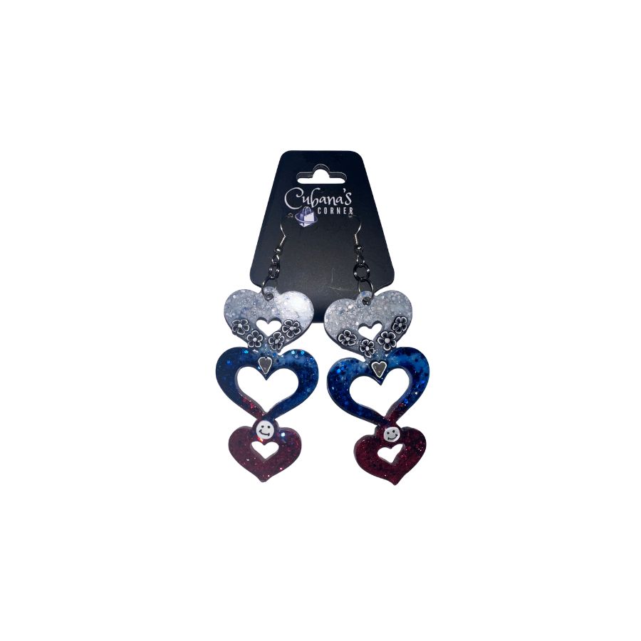 Red, White & Blue Face/Flower Earrings